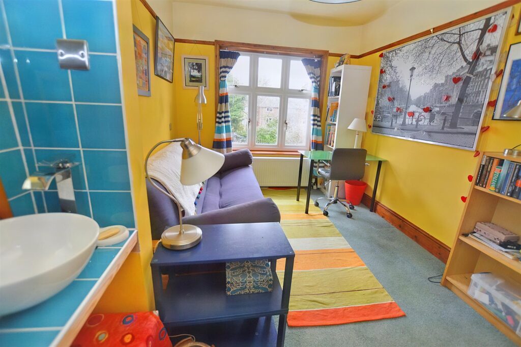 A light room enjoying two aspects to the front and side. Polished wood floor, radiator, timber fire surround with open fire if required.