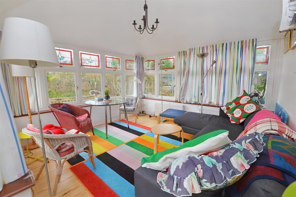 A more modern addition with polished wood floor and extensive glazing overlooking the south facing rear garden. Two radiators, French doors to patio.