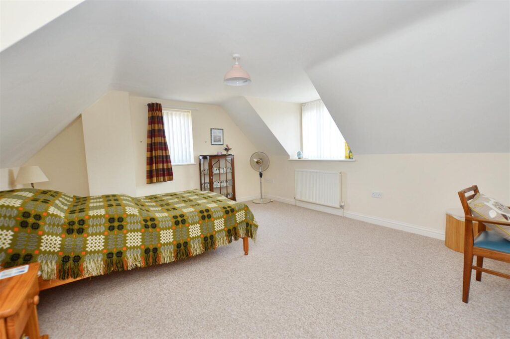 A beautifully proportioned and light room with front, side and rear aspects. Two radiators, built in wardrobe cupboard. Door to: